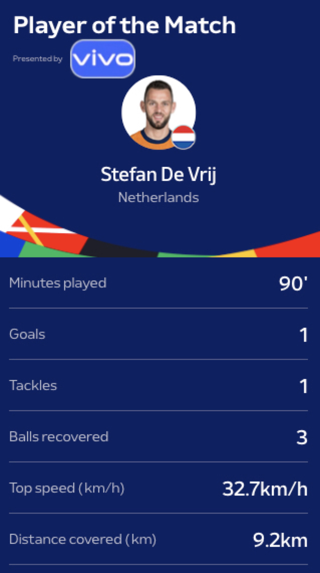 이 경기의 MVP는 동점 헤딩골을 넣은 네덜란드의 스테판 더 프레이 선수가 선정 되었습니다.