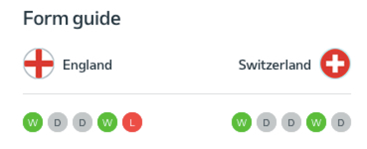 반면 스위스의 경우는 경기력이 예상외로 좋은 팀이고, 16강에서는 이탈리아를 2-0으로 완파하고 올라온 팀이라 어쩌면 이 8강 경기도 잉글랜드 보다는 스위스에 승리의 추가 기울지 않을까 많은 전문가들이 예상을 했습니다.