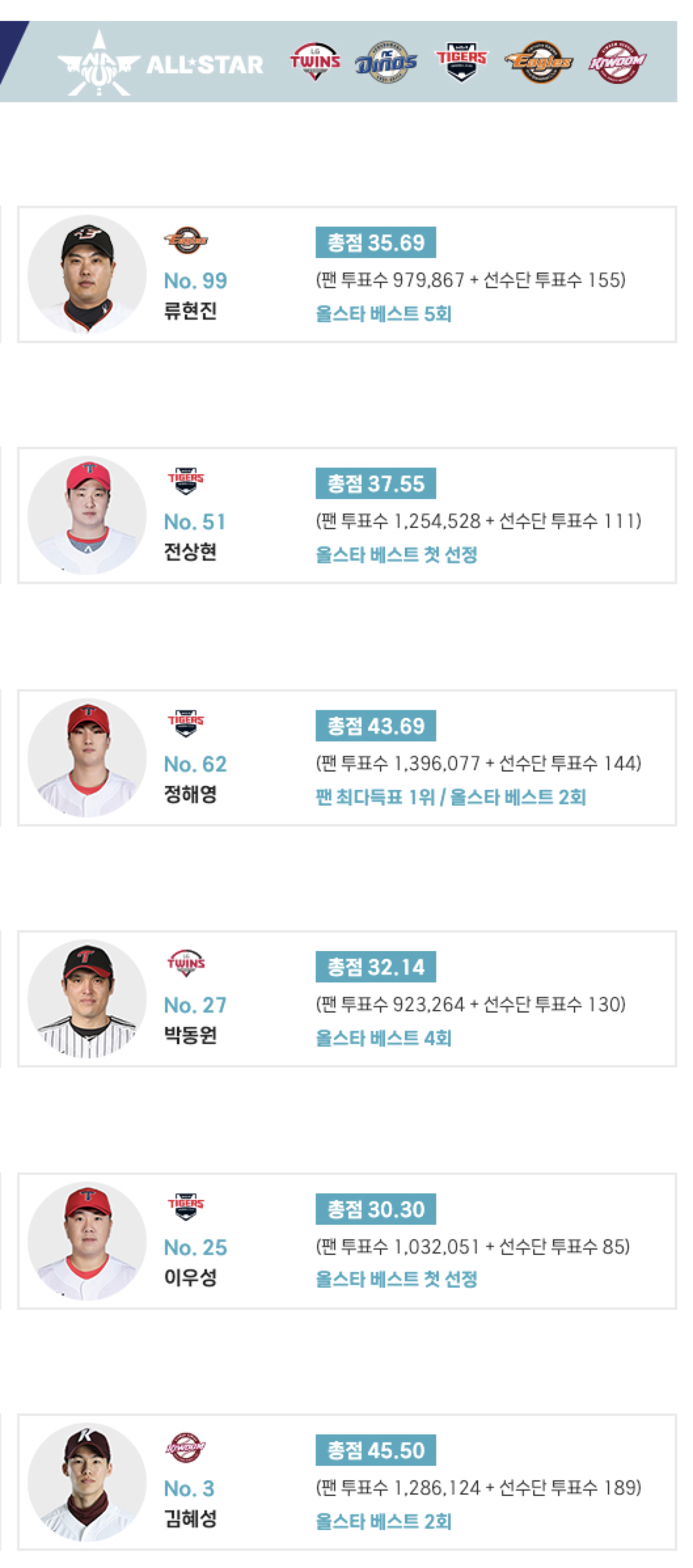 2024 KBO 올스타전의 명단은 이전 사전 팬 투표로 진행이 되었습니다. 양팀의 선발 투수는 원태인 선수와 류현진 선수로 선정이 되었구요, 최다 득표 선수는 두산의 중간계투인 김택연 선수 입니다. 고졸 신인으로 역대 5번째입니다.